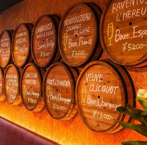 壁にはアレンジされたお洒落な樽にメニュー♪