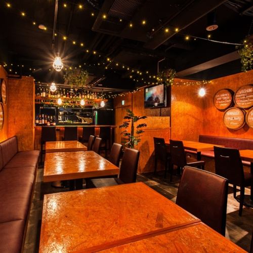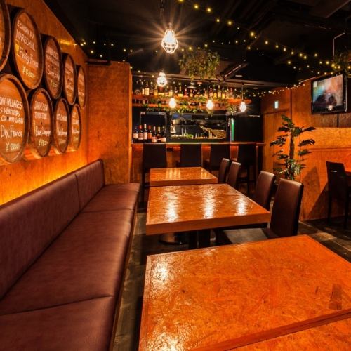 普段使い、宴会、お忍びデートにも◎色々な使い方が出来る大人の隠れ家空間…!テーブル席は全席ソファーシートとなっており、ゆっくりお寛ぎ頂けます。2台の大型モニターでは各種映像、スポーツ観戦もお楽しみ頂けます。その他、DVDプレイヤー、マイクなど設備充実!飲み放題付き宴会コース3800円~♪