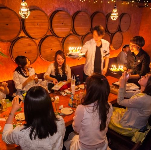 1つのテーブルでゆったり座れる♪誕生日、女子会、各種宴会に◎事前ご予約でバースデープレートのご用意も可能!